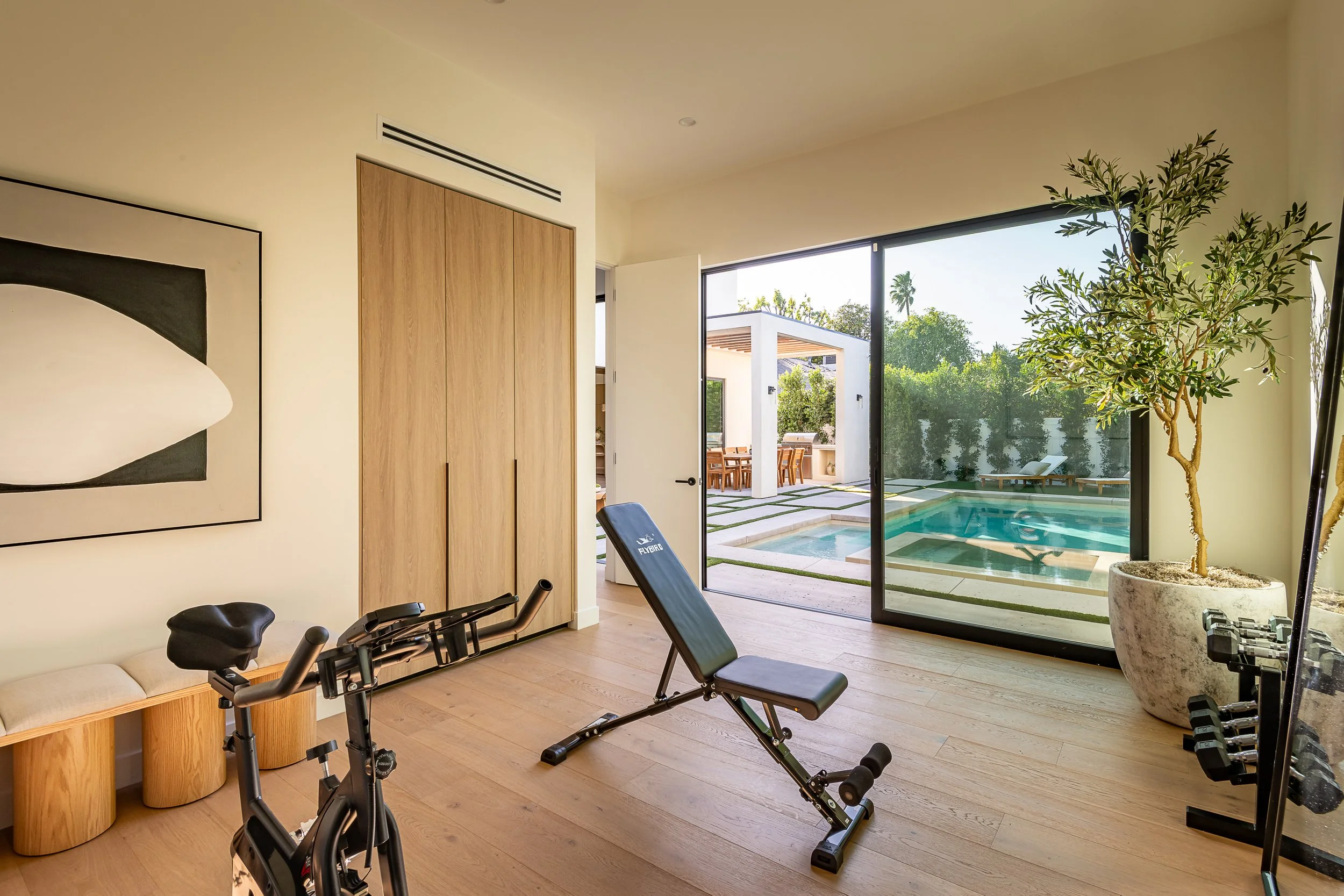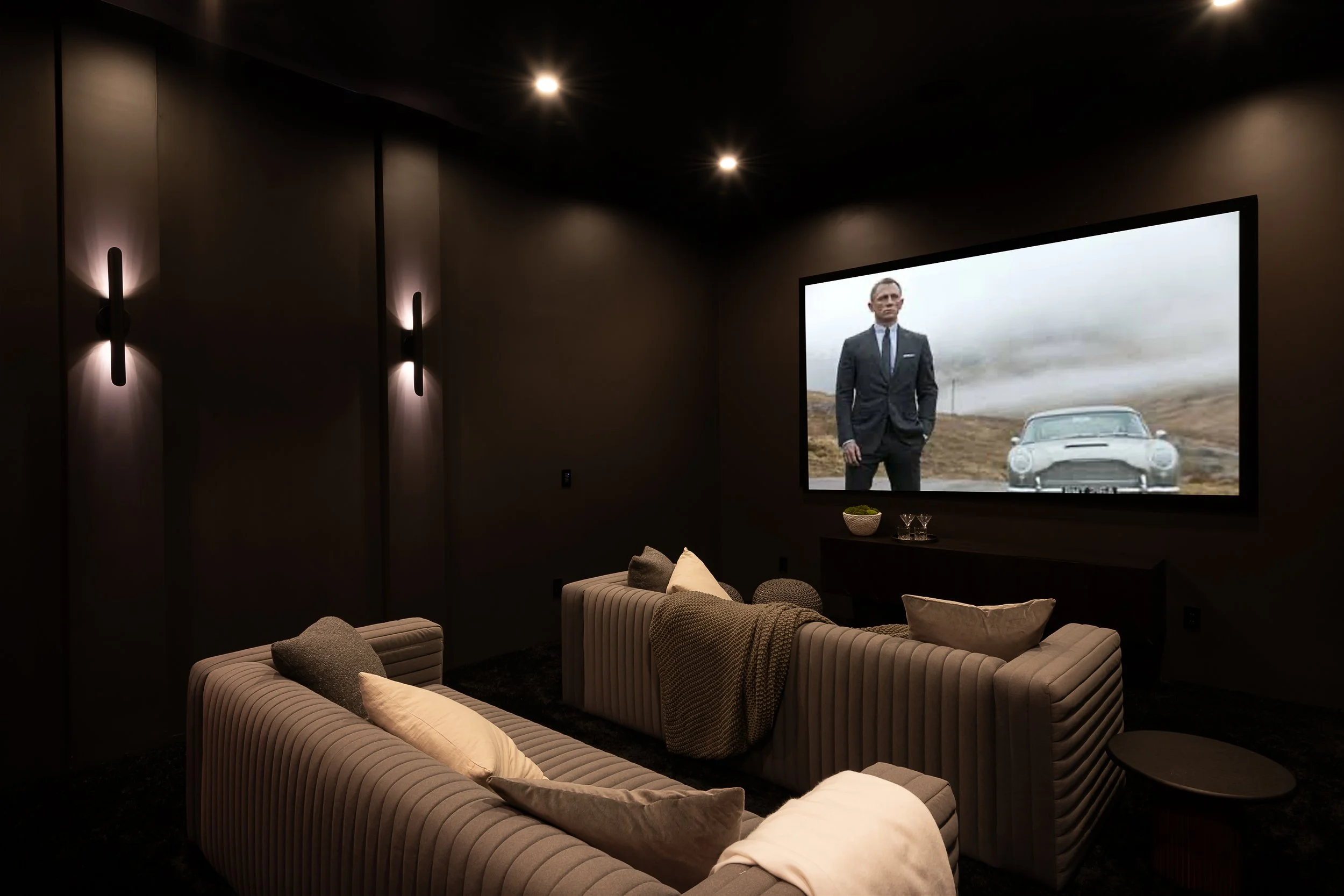 Private theater, wet bar, and wellness studio